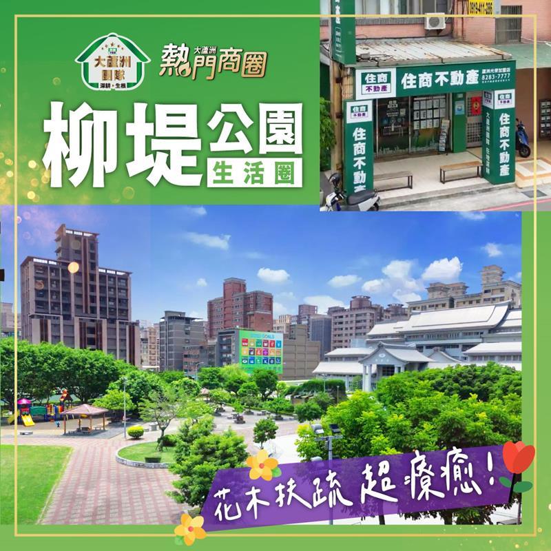 #柳堤公園 位於 #蘆洲 #南港子重劃區 內,廣大的綠地空間,除了休閒機能外,也具有都市防災的功用,是當地社區的重點公設。距離 #柳堤公園 步行只要3分鐘的 #住商蘆洲光榮店 建議您👇