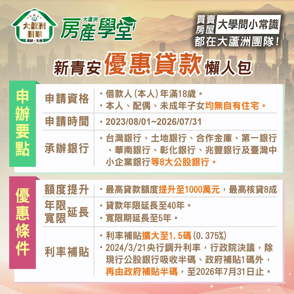 最專業的 #大蘆洲房產學堂 馬上帶您認識「新青安優惠貸款」的申辦資格與優惠條件