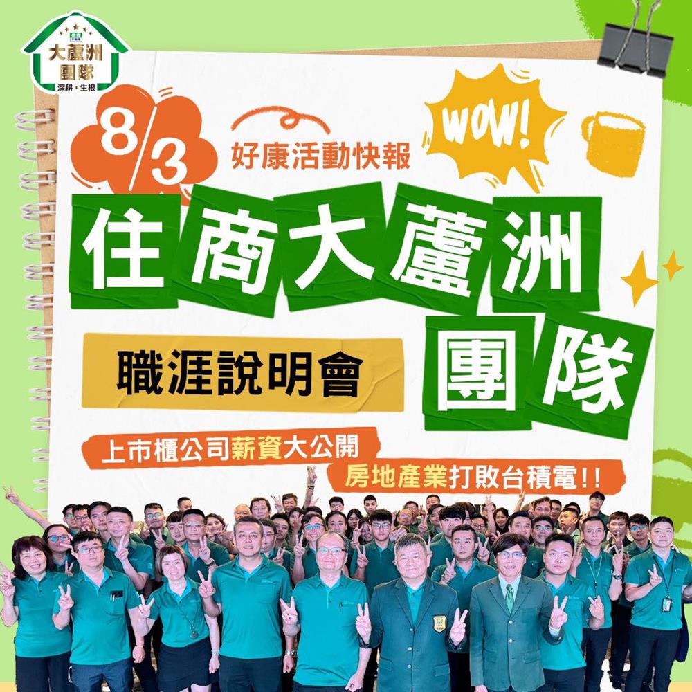 快來參加8月3日 #住商大蘆洲團隊 #職涯說明會,面對職涯發展,為自己做一次更好的選擇💪