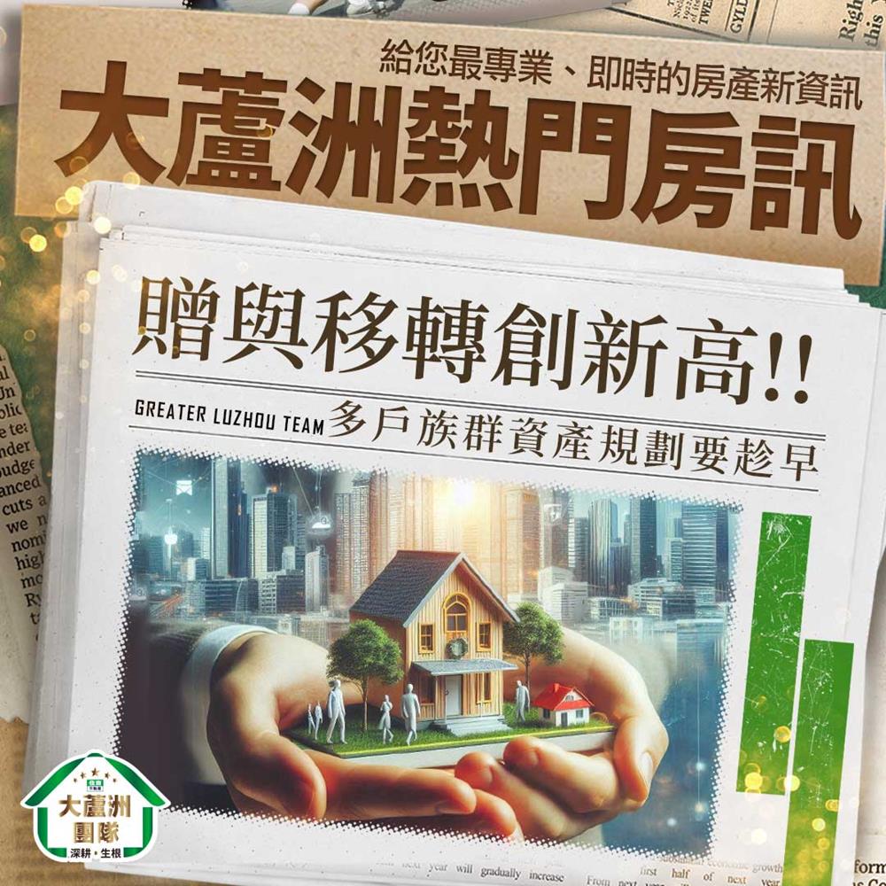 投入台灣房產交易市場長達27年的 #住商大蘆洲團隊 特別提醒多戶族群,運用贈與方式將房產轉往親友名下,若受贈人取得當時房屋價值偏低,則未來再轉手時,恐產生驚人的移轉稅金成本,建議若有房產移轉的需求,可過專業地政士或房仲團隊為您做更全面的規劃,不僅能圓滿達到資產傳承的目的,同時也幫自己聰明節稅。