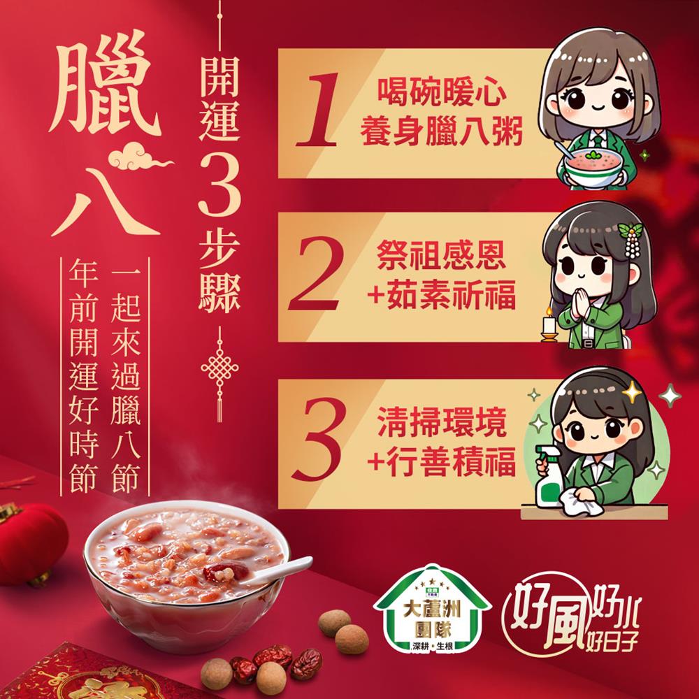 明天就是 #臘八節,跟著 #住商大蘆洲團隊 進行開運3步驟,讓您迎新年、接好運,順利平安賺大錢💵