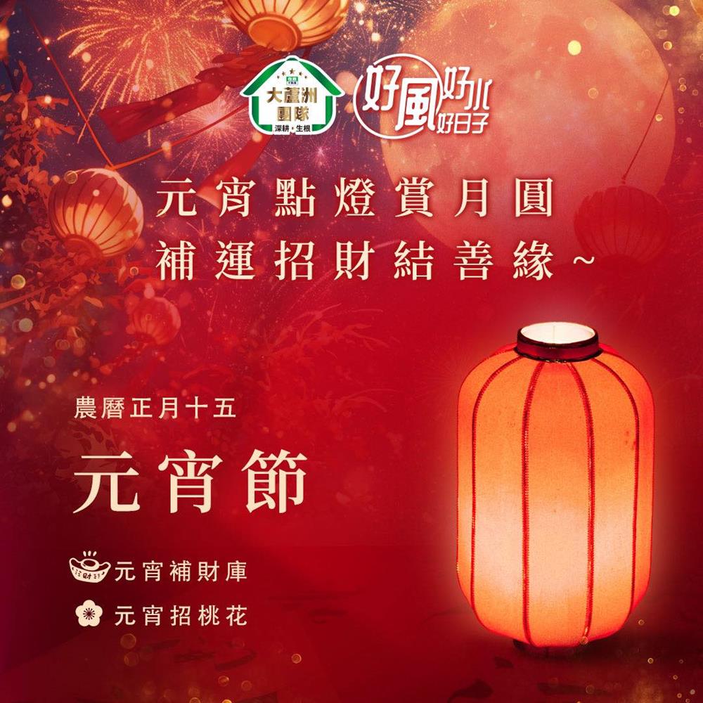 今天是農曆元月十五 #元宵節 ,蛇年第一個月圓之夜,也是一年中求財、補運最佳時機之一,#住商大蘆洲團隊 陪您過元宵,不只吃湯圓🥣賞花燈🏮,還有許多 #元宵開運 的妙招要教給您,用光明圓滿的正能量,與您結善緣,好風好水好日子,陪您用心過好每一天🫶