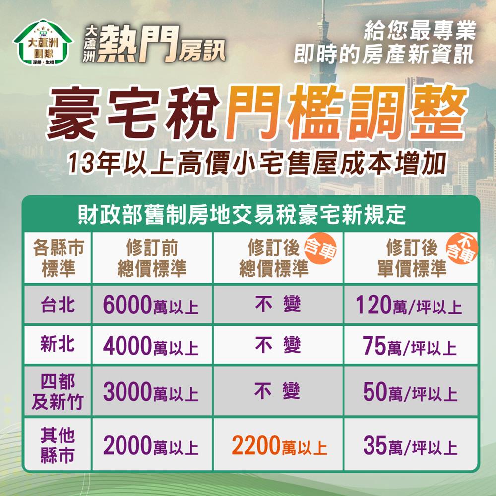 豪宅稅門檻調整 13年以上