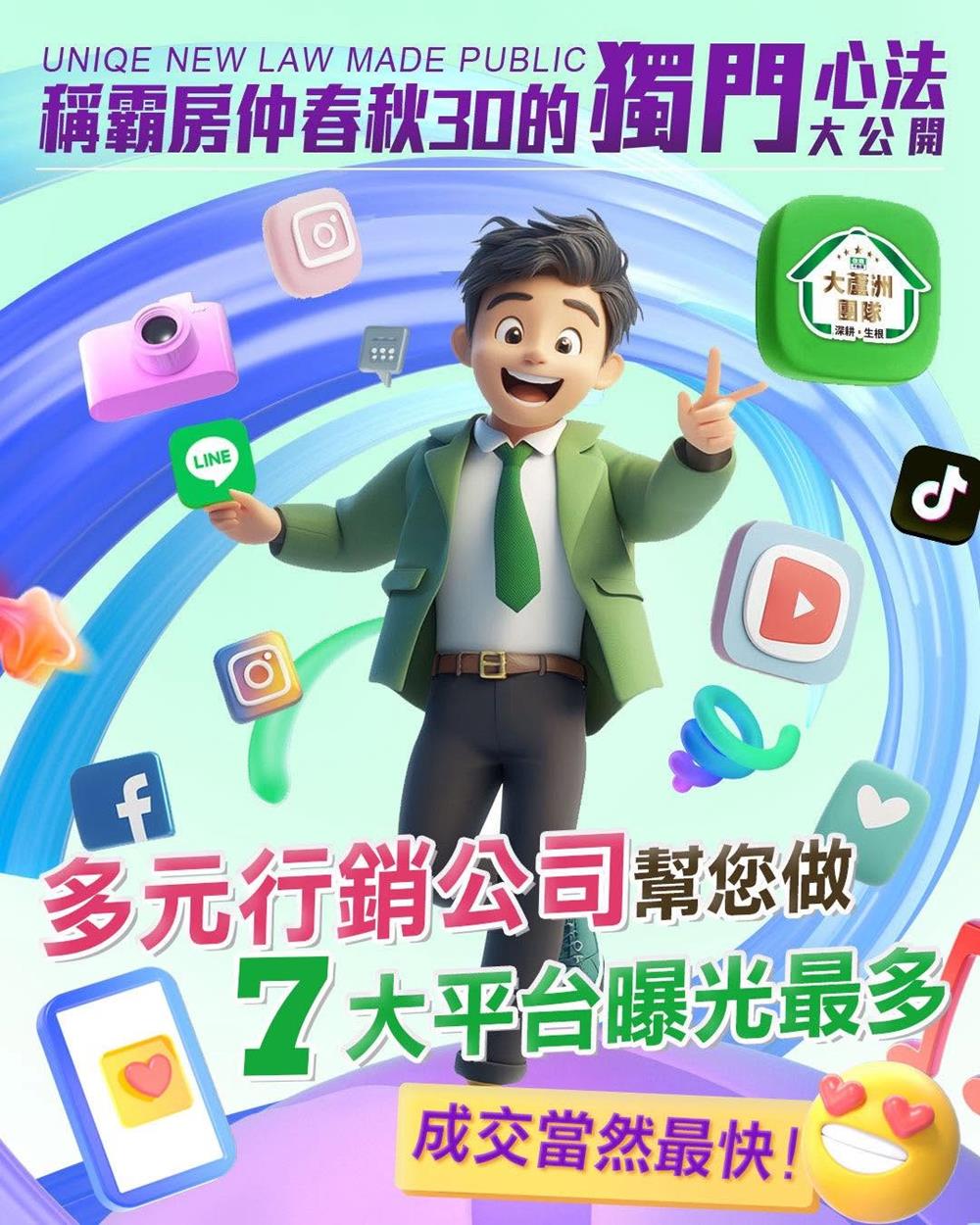 多元行銷公司幫您做,買賣方想聽的、想看的,我們全都有,#七大曝光平台 滿滿吸睛好料,讓您的客戶黏條條✅
