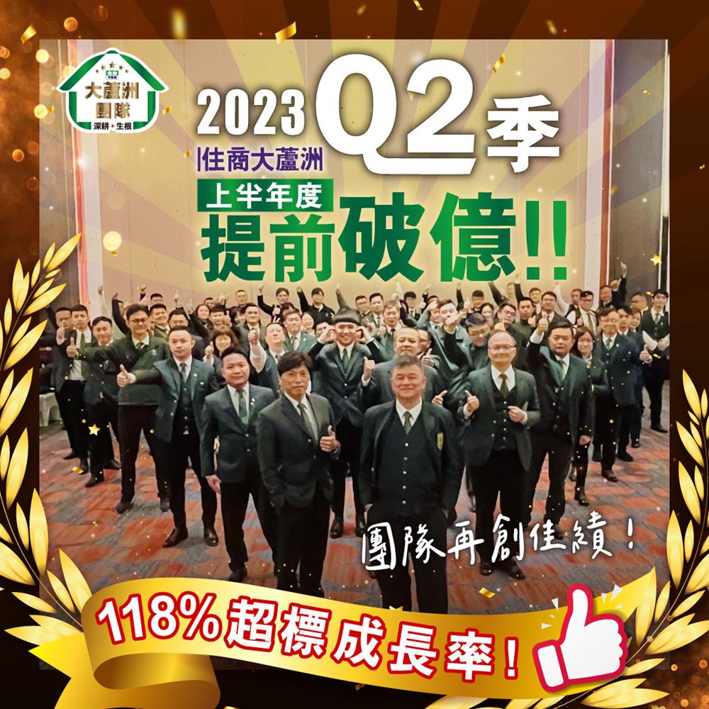 2023第2季,在這個景氣看淡的時刻,我們攜手交出了傲人的成績,Q2高達118%的業績達成率🎉🎉🎉,上半年成交金額提前破億🎊🎊🎊,證明了 #住商大蘆洲團隊 傲視同業的 #房仲 成交超能力 ,❤️感恩客戶的支持與信賴,💚感謝夥伴的投入與努力,我們用實力💪打敗不景氣,一起創造令人感動的奇蹟💎💎💎