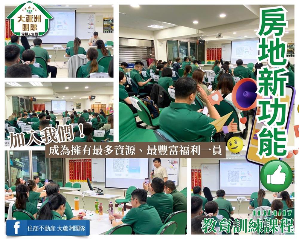全新技能全新教學,來自大蘆洲團隊的最新動向!無論你是菜鳥或老手,我們絕不只是口號,而是實實在在的承諾!專業、用心,這就是我們的座右銘,#住商大蘆洲團隊就是如此熱情!我們除了優質房仲的角色外,更像是一個大家庭,感謝房地資訊的支持和指導,有你們,我們的團隊才能一直進步!