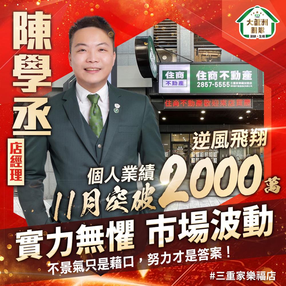#住商大蘆洲團隊 #陳學丞 不到30歲就扛起店主管的重責大任,以熱忱態度、專業服務,在充滿挑戰的房仲市場,開創出領先群雄的格局。個人年度業績破2000萬🎉🎉🎉證明了在 #住商大蘆洲 資源最多,新星也能閃亮亮🌟✨🌟